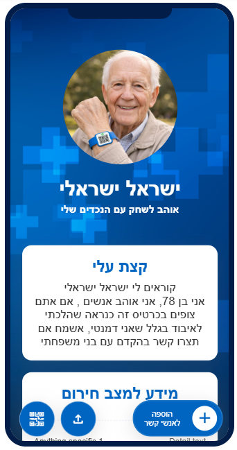 השירות שלנו מאפשר יצירת קוד QR אישי ומאובטח, שניתן להדפיס ולהצמיד לפריט שהאדם לובש או נושא איתו – צמיד, שרשרת, ארנק ועוד...